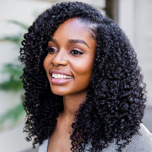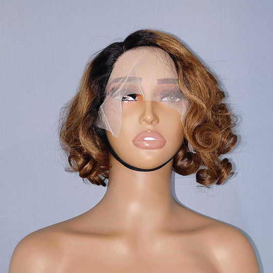 Mayqueen curly 13x4 high definition transparent T-shape Swiss lace wig for black women.